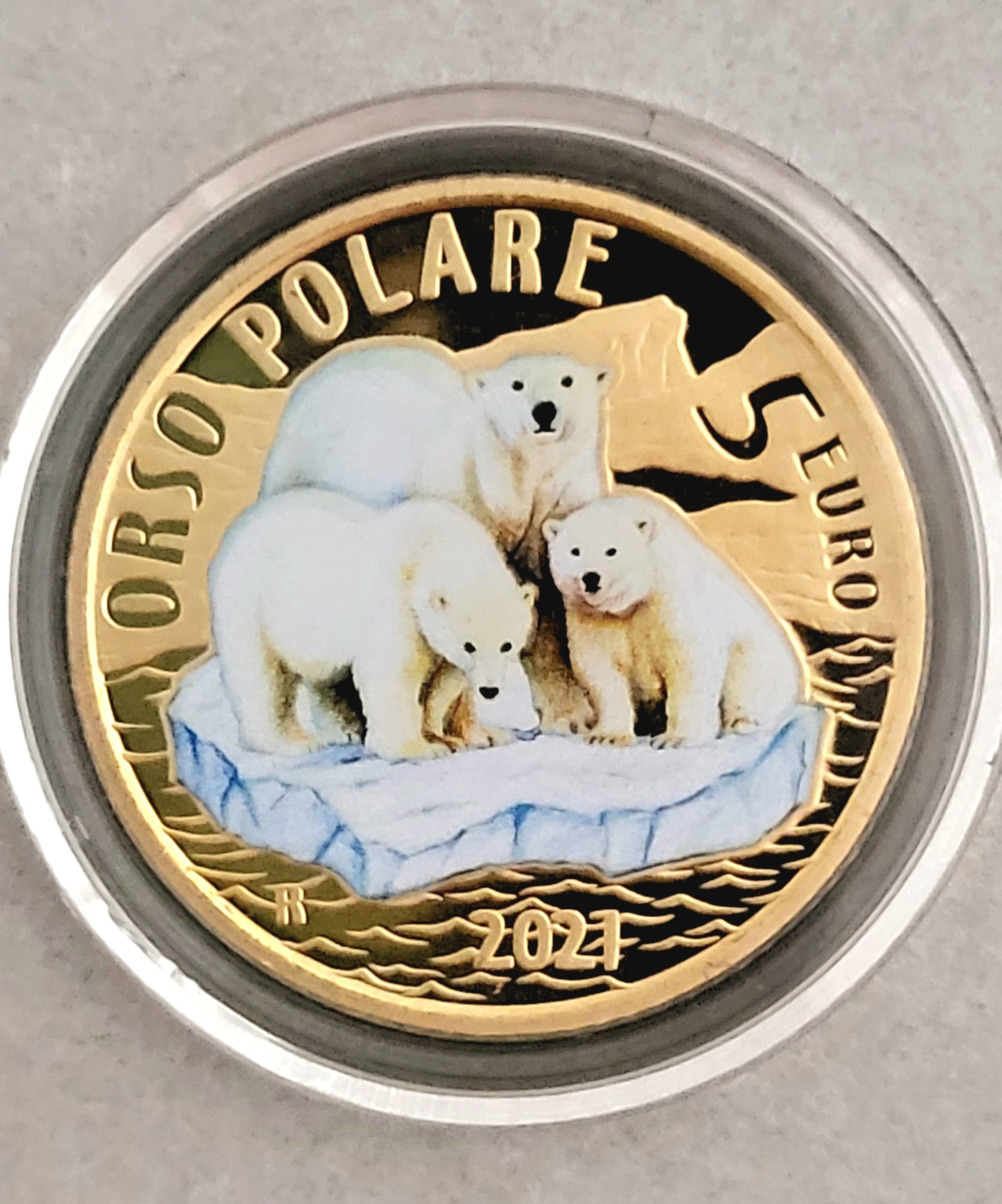 REPUBBLICA ITALIANA - 5 Euro 2021 - serie 'Animali in via d'estinzione - 'Orso Polare'